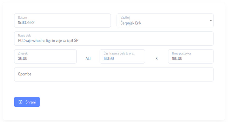 Vnesite ustrezne podatke v pojavnem oknu. Potrdite z gumbom Shrani