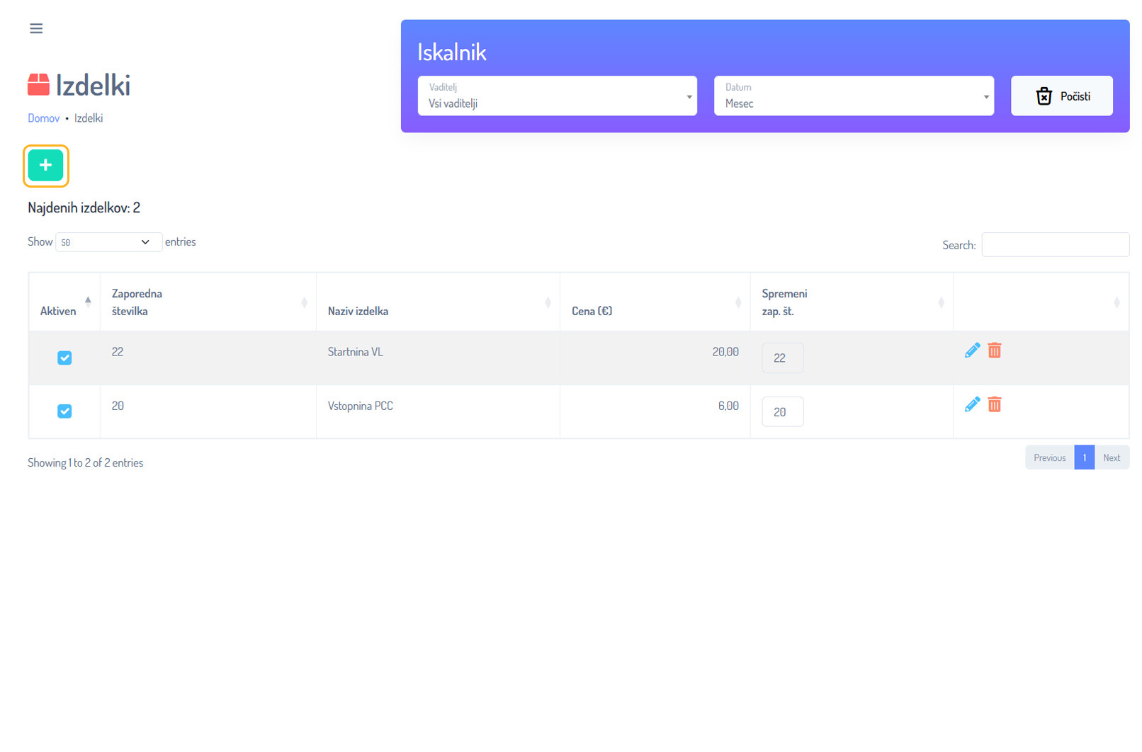 Izdelki - Dodajanje