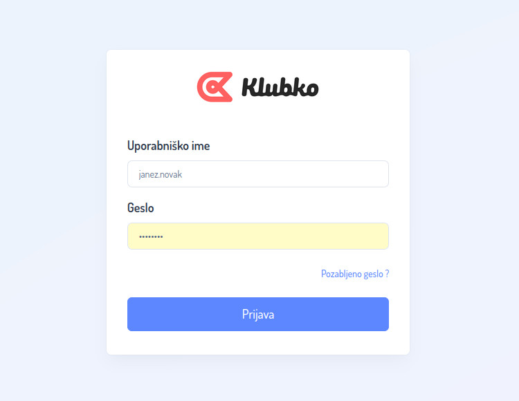 Prijava v aplikacijo klubko
