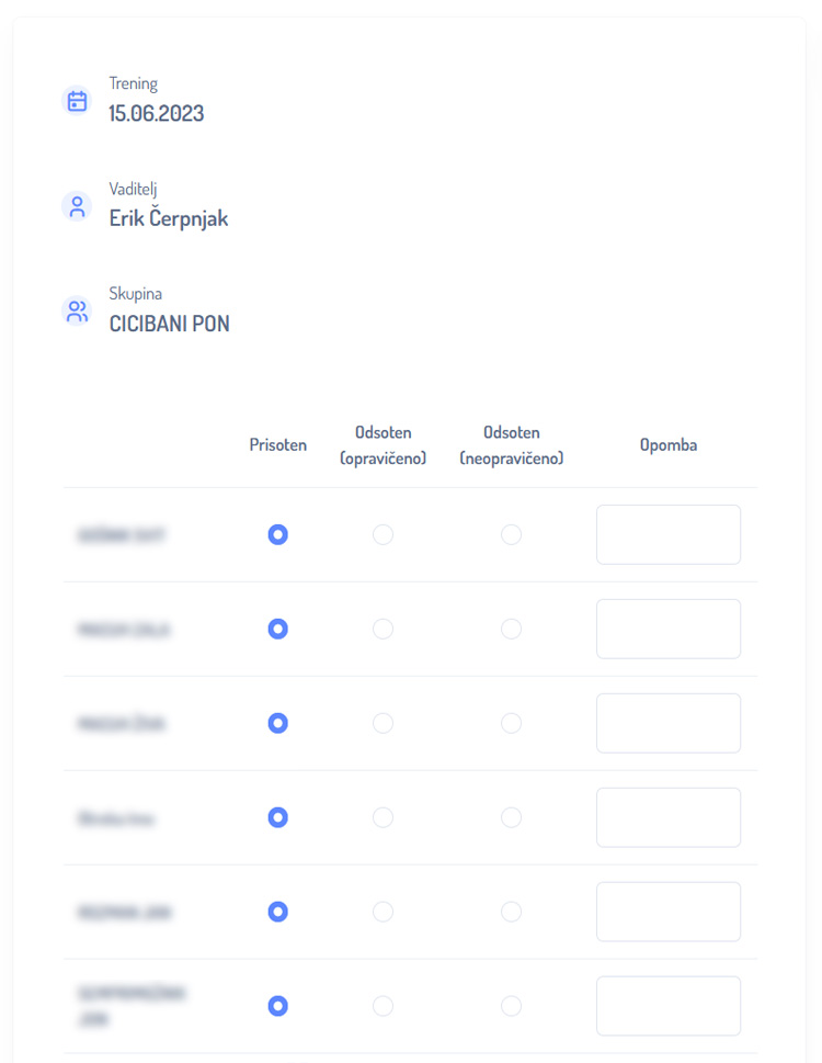 Ta opcija je navoljo samo če označite dodatnega vaditelja.