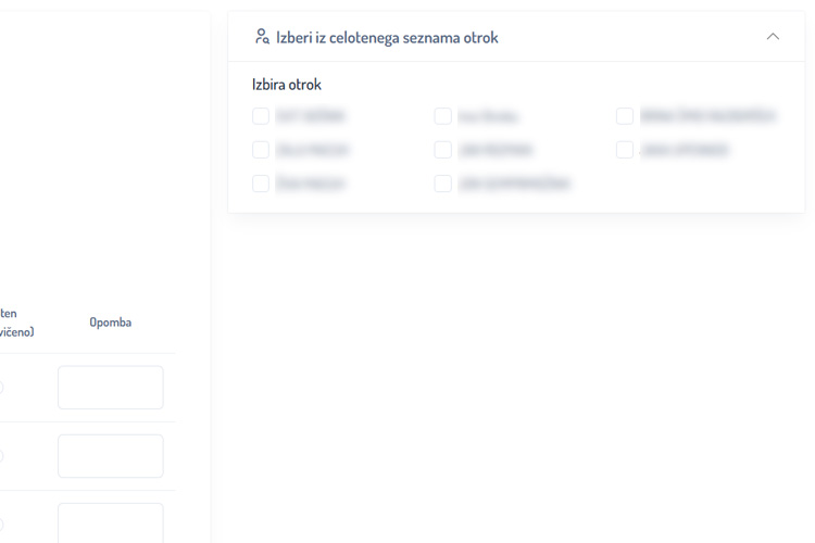 Za dodajanje otroka iz drugih skupin uporabite oddelek na desni strani (Izbira iz celotnega seznama otrok) in enostavno označite otroka, katerega želite dodati.