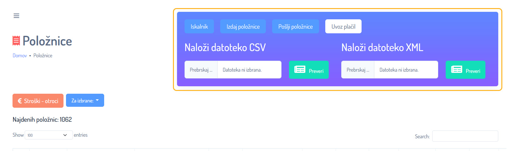 - Za nalaganje XML datotek uporabite gumb Prebrskaj. Izberite datoteko, ki jo želite naložiti in potrdite z gumbom Preveri