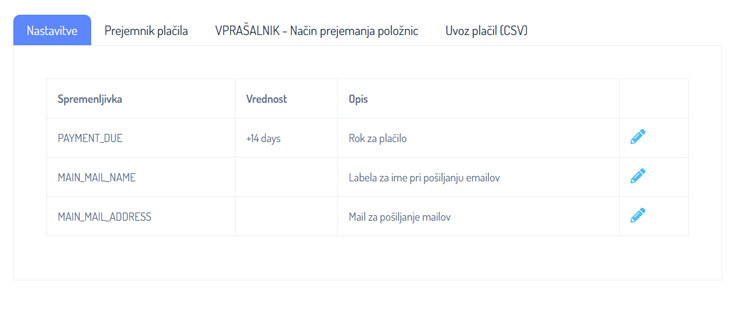 Zavihek nastavitve
